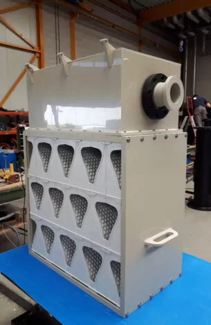 Crescendo® is your all-in-one solution for evaporating liquids, scrubbing hot gases, stripping, cooling, and more. Its secret? Smart fluid dynamics. As liquid flows down an inclined plate, it creates a Venturi effect—generating a slight vacuum through openings on the plate’s surface. This draws in gas, forming long, stretched bubbles that mix intensively with the liquid. The result? Maximum contact time for heat and mass transfer. A low-pressure fan boosts the process, making Crescendo® highly efficient and versatile for gas-liquid interaction.